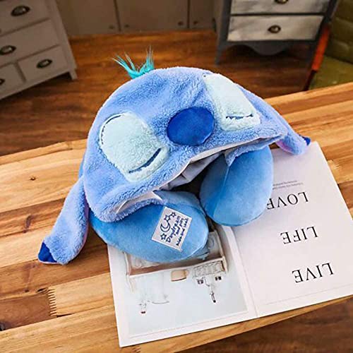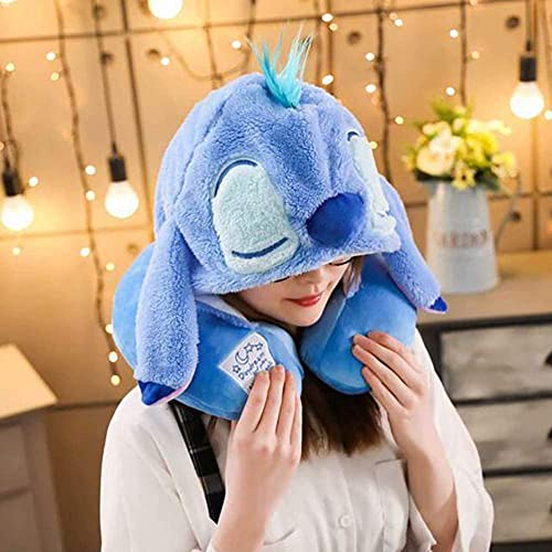 Cuscino cervicale a forma di U con simpatico animale dei cartoni animati 2 in 1 Cap comodo cuscino da viaggio in cotone, per alleviare lo stress, per la casa, per l'ufficio, regali, Stitch