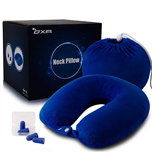 OXA Cuscino per Cervicale a Memoria di Forma con 2 Paia di Tappi per le Orecchie, Fibbia Doppia, Colore Blu