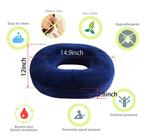 Cuscino a ciambella in Memory Foam, cuscino ortopedico, sollievo dal dolore dato da emorroidi, dolore al coccige, dolori post parto e post operatori, adatto a sedie a rotelle, sedili dell'auto, all'ufficio o all'esterno, colore blu scuro