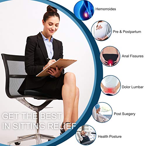 OTTIENI IL MEGLIO IN SEDUTA - Riduce la pressione su bacino, coccige, zona lombare e perineo. Allevia il dolore da emorroidi, ulcere da decubito, prostatite, gravidanza, parto e lombalgia.
