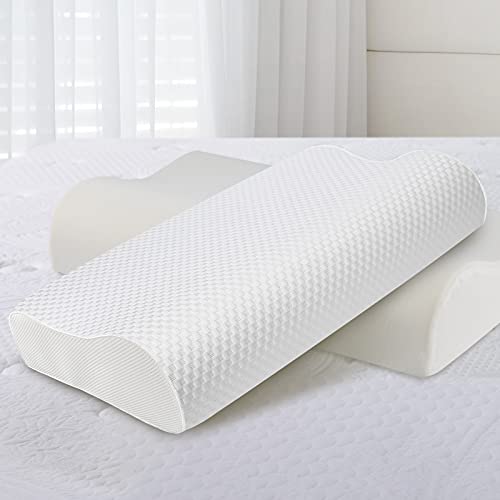 Look envy Cuscino per il Collo Sostegno, Cuscino Cervicale Memory Foam Guanciale Letto in Memory Foam Ergonomico, Cuscino D'onda Cuscino per Dormire,Federa Rimovibile e Lavabile 60 * 35 * 9/11CM