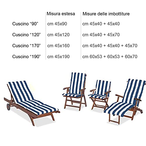 Cuscino Copri Sedie Sdraio Prendisole Mare Giardino Terrazzo 45x120 cm a Righe (Blu)