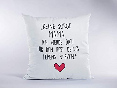 Cuscino decorativo “Keine Sorge Mama, Ich werde dich für den Rest deines Lebens nerven", idea regalo per la festa della mamma, bianco, 40 x 40 cm, inclusa Imbottitura (lingua tedesca)
