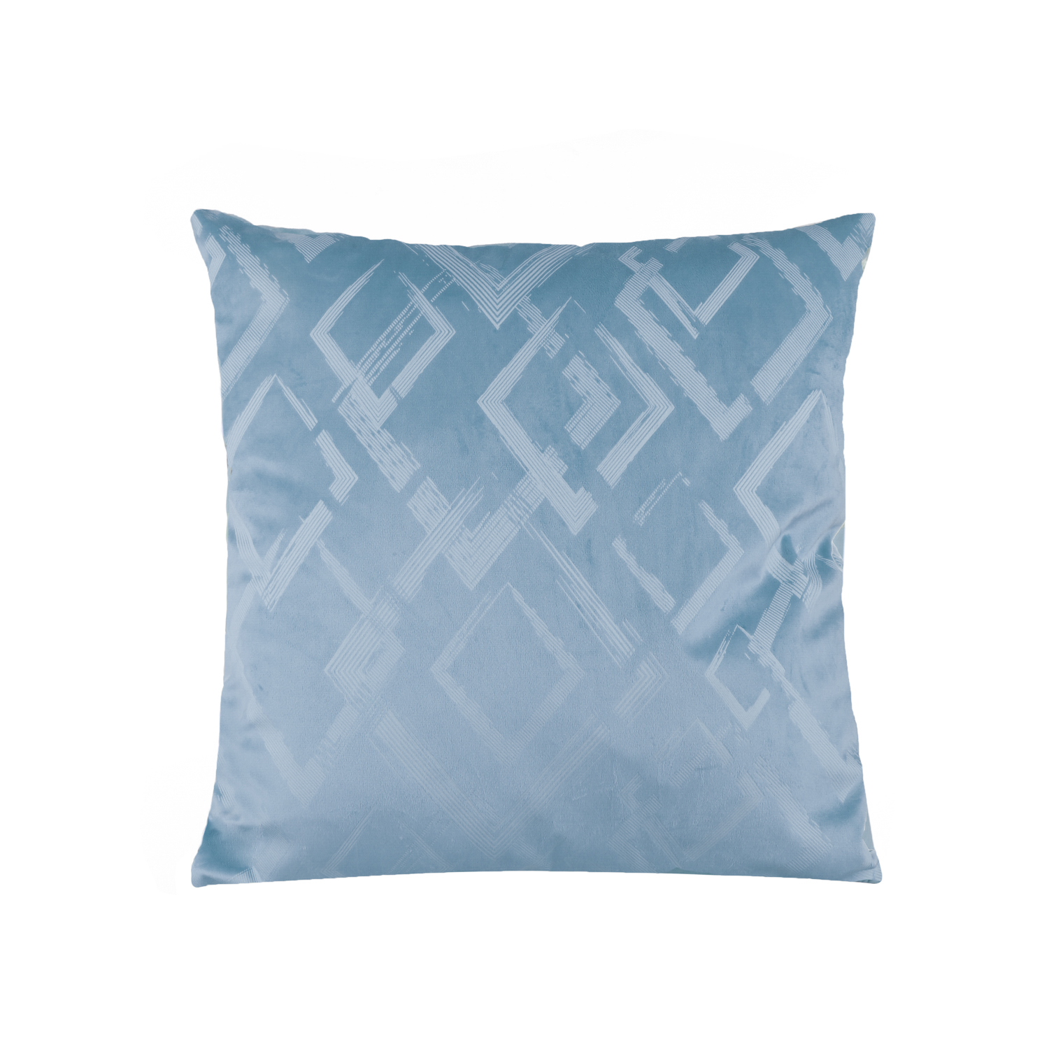 Completa l'arredo del salotto con questo bel cuscino decorativo dall'effetto velluto. Ideale da posizionare sul divano, sulla poltrona o sul letto in camera, aggiunge un nota estetica davvero gradevole. I delicati decori a rombi sull'elegante trama azzurra in rilievo si adattano con gusto ad arredi classici e moderni. Grammatura: 270 gsm. Imbottitura: 400 gsm. Misura cuscino quadrato: 50x50 cm. Lavabile in lavatrice a 30°.