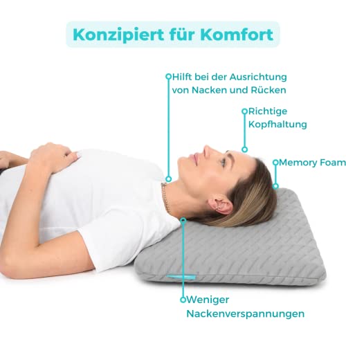 Cuscino per chi dorme in posizione addominale, ergonomico, in morbida schiuma visco, altezza solo 5 cm, con rivestimento in bambù, 40 x 60 cm