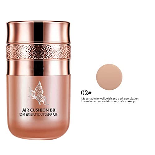Cuscino a farfalla BB crema, cuscino d'aria CC crema BB crema, correttore idratante, base luminosa per il trucco a lunga durata con spugna per il trucco a farfalla (Lvory White+Natural Skin Color)