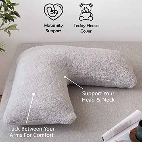 LSC,Cuscino in pile a V con federa in pile super morbido e caldo, a forma di V, imbottitura in fibra cava per testa, collo e schiena, maternità, gravidanza (argento)
