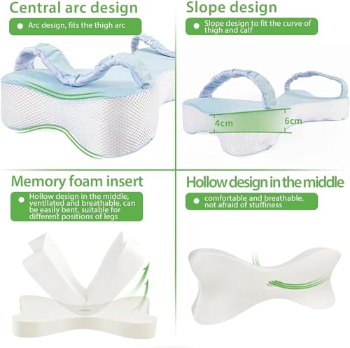 Utilizzando la memory foam durevole di alta qualità al 100%, superficie in puro cotone (il bianco è in fibra di bambù), laterale in tessuto a rete, design cavo nel mezzo, traspirante, può essere facilmente piegato, adattarsi a gambe diverse. Metti in posizione, le tue gambe possono stare comode per molto tempo.