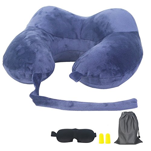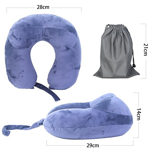 Cuscino Gonfiabile da Viaggio per Collo Portatile con Tappi per Orecchie e Mascherina per Occhi e Borsa per Trasporto Soffice per Riposare in Aereo, Auto, Bus, Treno, per la Siesta in Ufficio ecc. - Duomishu