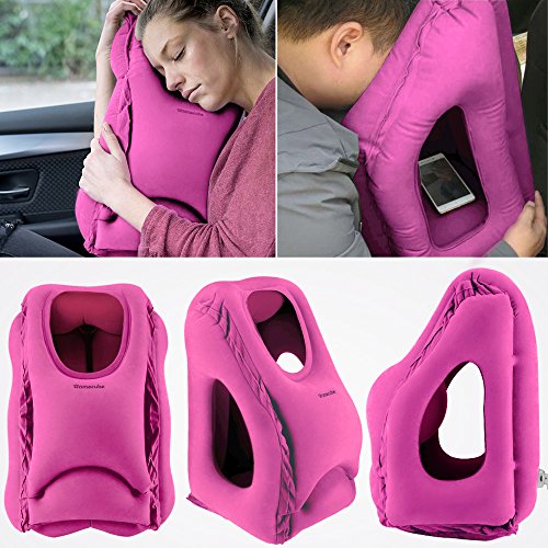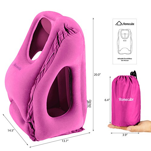 Cuscino Gonfiabile da Viaggio Homecube, Multifunzione -Supporto Testa Collo con Scomparto per lettura, Ideale per Viaggi in Treno, Auto, Aereo e Bus (Rosa)