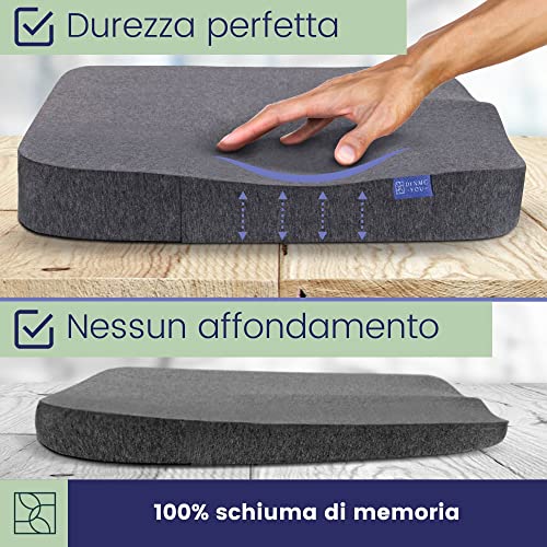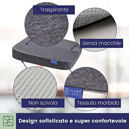 Cuscino Memory Foam DYNMC YOU - Cuscino Sedia Ufficio o a Rotelle - Cuscini Sedie Quadrati - Supporto e Stabilità Perfetti - Tessuto Antiscivolo, Rivestimento Lavabile