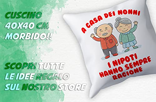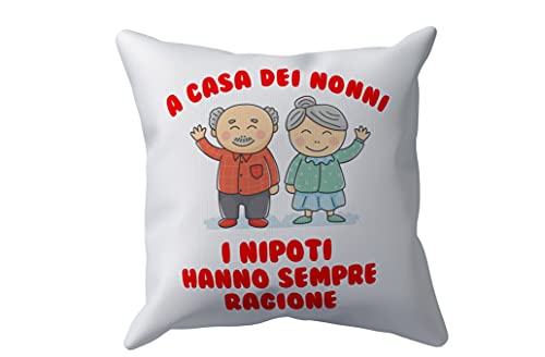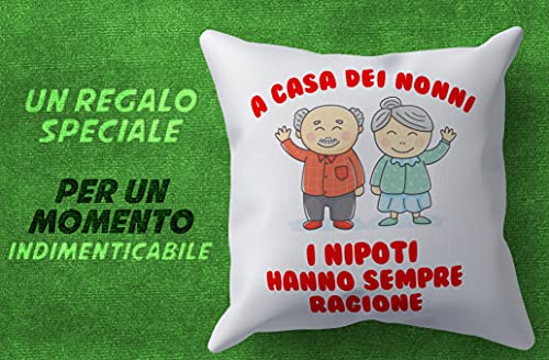 Cuscino Nonni - A casa dei Nonni i Nipoti hanno sempre ragione - Cuscino Nonni Divertenti - Festa dei Nonni - Cuscino Festa dei Nonni - Idea Regalo