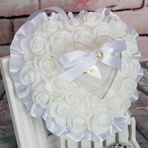 Cuscino per FEDI Nuziali Rose Cuscino Anello di Nozze Cuore Cuscino Anello Romantico Cuscino Anello in Raso Accessori per FEDI Nuziali Bianche Nuziale Fiori Cuscino Cuscino per Anelli di Fiori