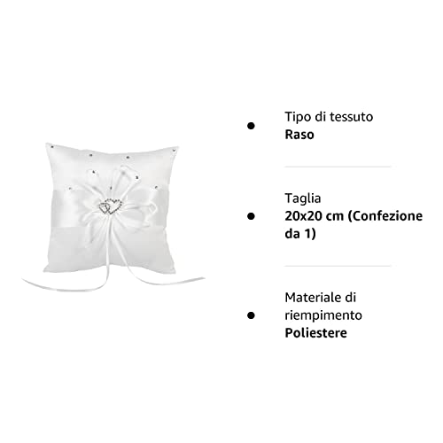 Cuscino per FEDI Nuziali, 20 * 20cm Bianca Raso Cuscino per FEDI Cuscino per FEDI Cuscino per Cuscino per Portatore di FEDI Nuziali con Macchia di Bowknot Diamanti A Doppio Cuore