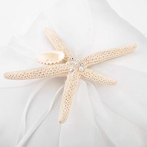Dettagli perfetti, cuscino d'avorio con bellissime stelle marine aggiunge romanticismo per il matrimonio.