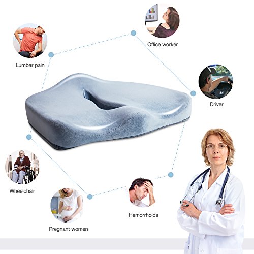 Cuscino Ortopedico da Seduta in Comfort Memory Foam per la Zona Lombare, Coccige e per la Riduzione dei Dolori di Sciatica (Grigio)
