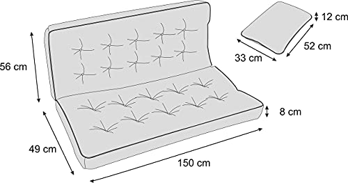 I nostri prodotti sono più piccoli del 10% appena disimballati. Il prodotto raggiunge dopo circa 2 giorni di utilizzo la dimensione desiderata. Perfetto come cuscino per una panchina da giardino, per un'altalena da giardino.