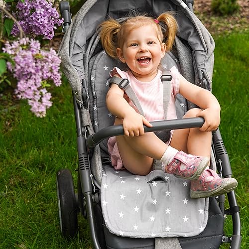 Cuscino per passeggino - per sedile, per seggiolino per bambini set universale traspirante con protezione per cintura 75 x 35 cm Minky Grigio Chiaro Stelle