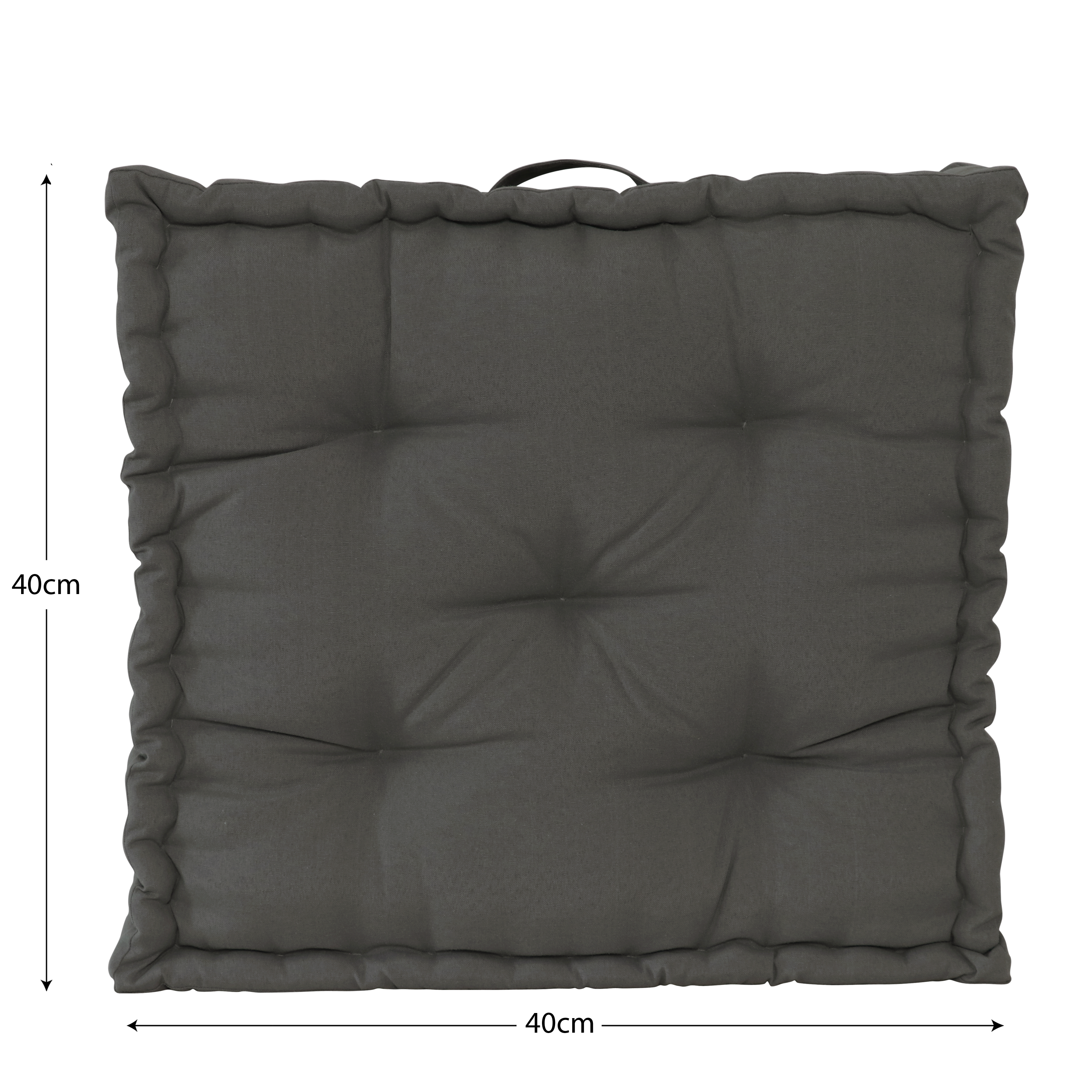 Questo cuscino da pavimento è ideale per sedersi comodamente sul pavimento e creare un'atmosfera accogliente. Questo prodotto è certificato dall'etichetta OEKO-TEX®, che garantisce l'assenza di sostanze nocive in quantità che potrebbero nuocere alla salute. Il trattamento idrorepellente del suo tessuto facilita la pulizia del cuscino. Grazie alla sua maniglia, puoi spostare facilmente il cuscino. Disponibile in diversi colori, mix and match di colori e cuscini da pavimento.