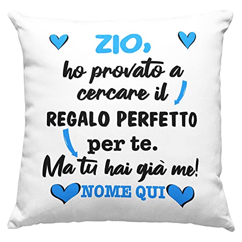 Zio Cuscino Personalizzabile Regalo uomo e donna compleanno originale Idee Regali per lui e lei per Natale - con Imbottitura (40_x_40_cm, Zio)