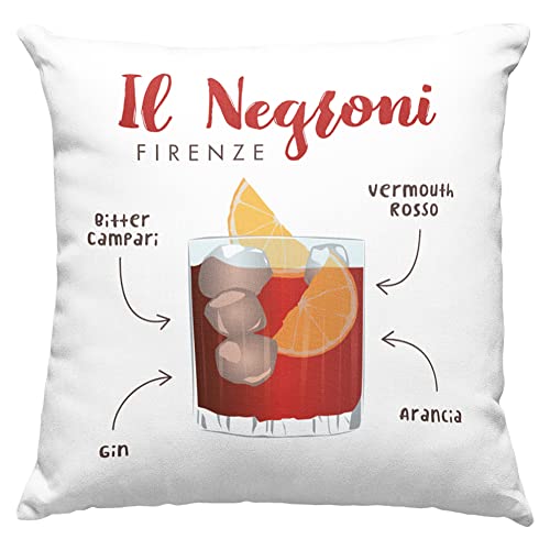 Cuscino personalizzato Il Negroni, Cocktail Bar, Cuscino 40x40cm, Stampa Divertente, Arredamento Casa, Arredo Divano Letto, Idea Regalo Natale Regalo compleanno - con Imbottitura (40_x_40_cm, Bianco)