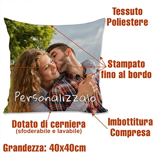 Cuscino Personalizzato con Foto e Testo, Idea Regalo per Ogni Occasione, Imbottitura Compresa, 40 x 40 cm Ampia Scelta Colore Nero