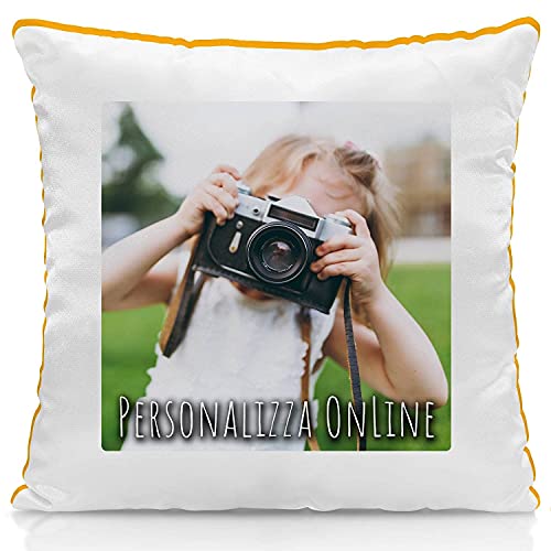 Cuscino Personalizzato con Foto e Testo, Idea Regalo per Ogni Occasione, Imbottitura Compresa, 40 x 40 cm Ampia Scelta Colore Arancione