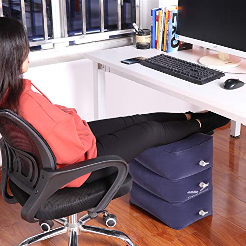 Cuscino poggiapiedi da viaggio gonfiabile, poggiapiedi regolabile in altezza cuscino da viaggio per aereo, auto, casa, ufficio, cuscino da viaggio per aereo portatile, include pompa a mano (blu)