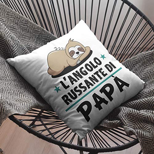 IDEA REGALO PAPÀ: Questo cuscino personalizzato con su scritto "L'angolo russante di papà" è un idea regalo uomo utile per i papà che russano. É perfetto e simpatico se sei in cerca di idee regali per lui originali e simpatiche per la festa del papà, natale, compleanno o per qualsiasi altra festa.