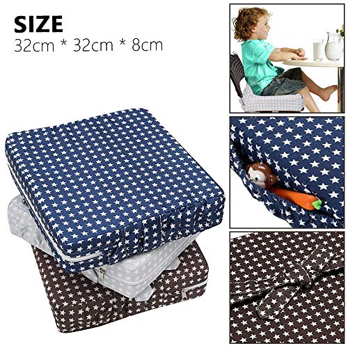 Cuscino Rialzo Sedia Bambini Cuscino con Tasche Imbottito Alzasedia per Sedia da Pranzo (Blu)