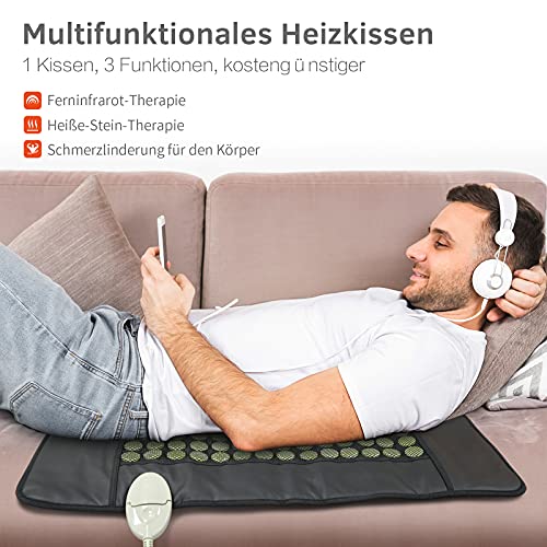 UTK Jade - Cuscino riscaldante per schiena, misura lusso, 126 pietre di giada, temperatura regolabile, spegnimento automatico e borsa da viaggio