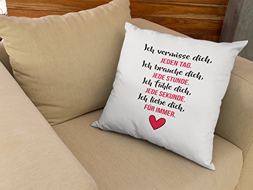 Cuscino romantico con la scritta "'Ich vermisse dich, jeden Tag ...”, cuscino decorativo, idea regalo, bianco, 40 cm x 40 cm, inclusal'imbottitura