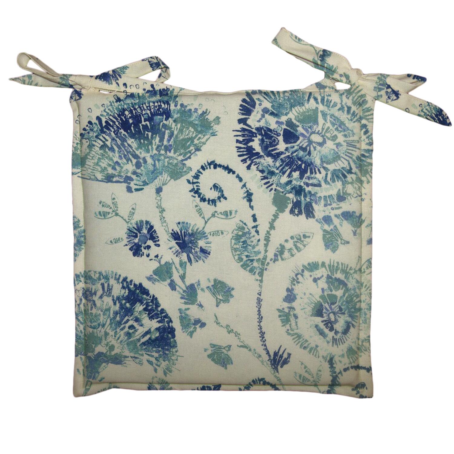C/sedia sfod. panama 40x40 fiore blu. Con laccetti per un facile fissaggio alla sedia. Rendono l'ambiente cucina più attuale.. Perfetti per rendere più comoda la vostra sedia