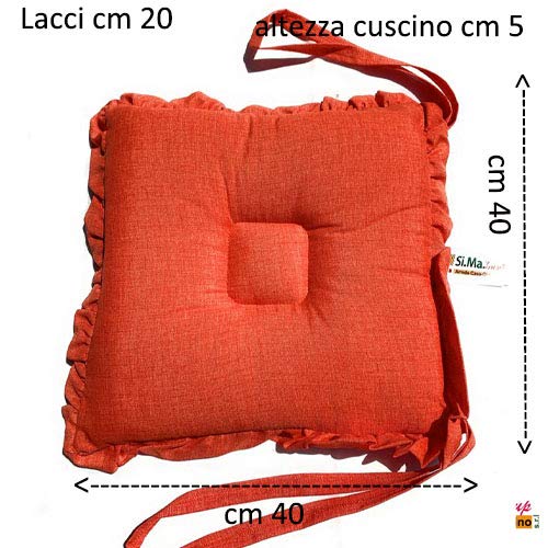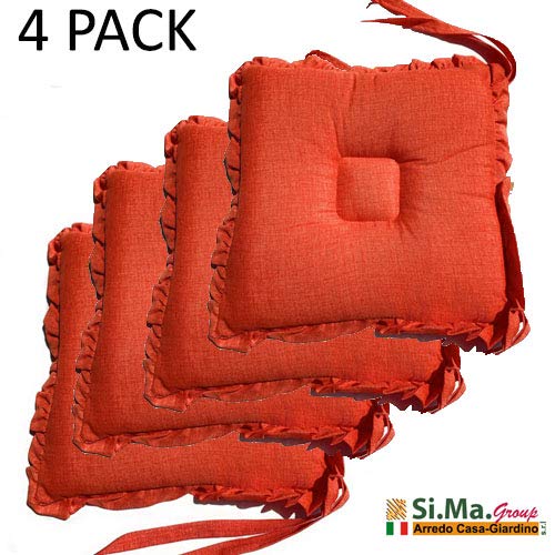 Cuscino Sedia Sagomato Set 4 Pezzi Quadrato con Volant Tinta Unita 40x40x20 Sartoria Italiana (Arancione)
