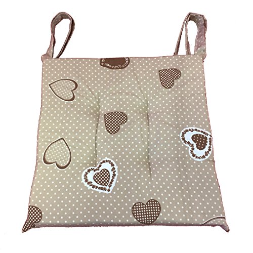Cuscino sedia SHABBY cuore marrrone pois bianco, trapuntati al centro 40x40 spessore 5 cm, copri sedia cucina, Euronovità