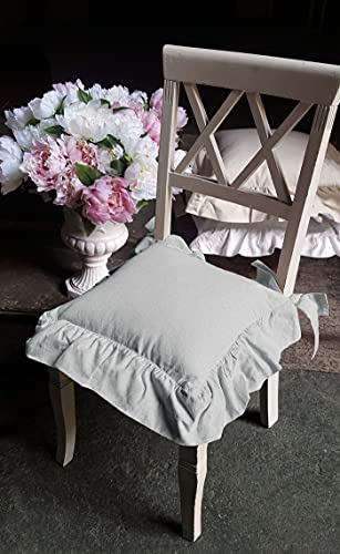 AT17 Cuscino per sedia Shabby Chic con Volant 40 x 40 Colore Grigio Perla