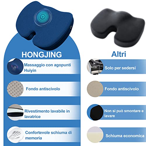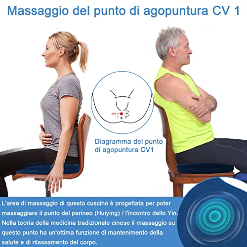 Cuscino per sedile massaggiante per alleviare la pressione, HONGJING cuscini per sedia da ufficio in schiuma di memoria per lunghe sedute, cuscino per il sedere con massaggio (blu)