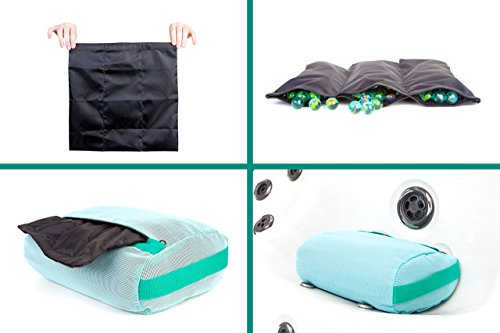 NIENTE PIÙ CUSCINI GALLEGGIANTI PER TE: Basta sprecare i tuoi soldi per comprare dei cuscini per Jacuzzi da quattro soldi troppo sottili e che se ne fluttuano in giro per la vasca idromassaggio, complicandoti la vita! Questo pratico cuscino spa di rialzo è dotato di un vano interno che può essere riempito con delle biglie. Il tuo cuscino se ne starà al suo posto stabile come una roccia, ma incomparabilmente morbido. Tutta la qualità che meriti.