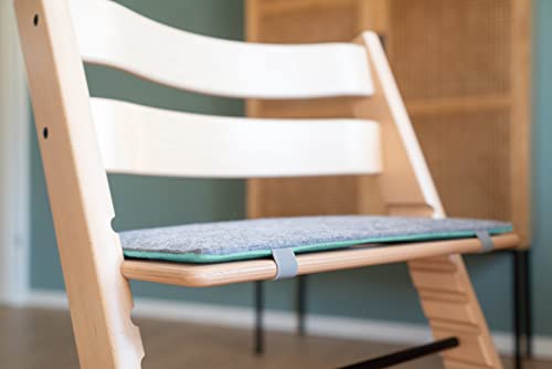 Cuscino per seggiolone compatibile con Stokke Tripp Trapp (turchese/grigio), cuscino per sedia, cuscino in feltro, accessorio per sedia per bambini, seggiolone per scale in legno | Mahona