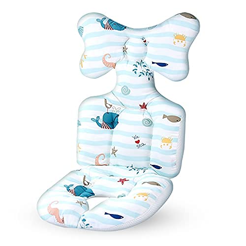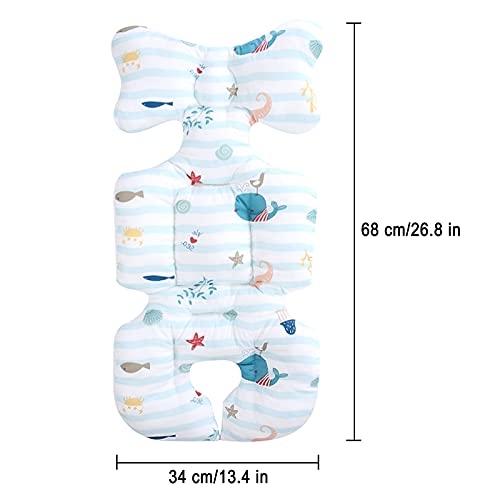 DISEGNI CARINI--I bambini adoreranno questi simpatici disegni di delfini. Lo stile prezioso e carino del cuscino per passeggino può attirare l'attenzione del bambino. Le dimensioni del prodotto della seduta del passeggino sono 35 x 67 cm. Le grandi dimensioni possono far sentire il bambino a suo agio e protetto!