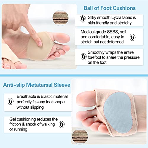 Cuscinetto metatarsale per alleviare il dolore: cuscinetti per avampiede traspiranti, morbidi e confortevoli per donne uomini, che alleviano efficacemente la pressione dell'avampiede e l'affaticamento della camminata. Ideale per il neuroma di Morton, la gia metatarsale, le vesciche, i calli e i calli;