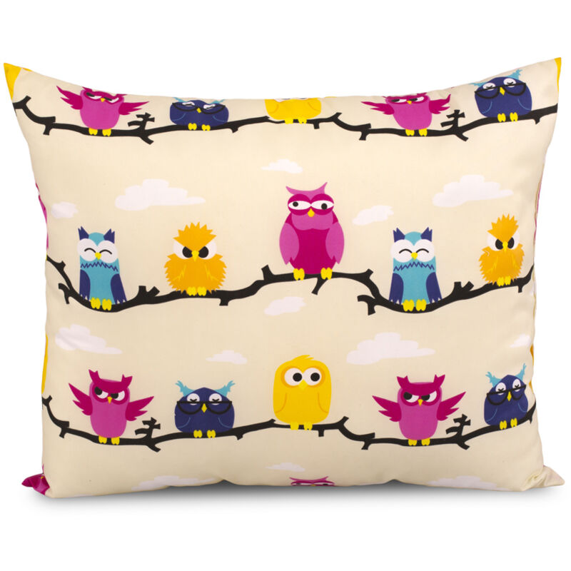 Cuscino Simply 40x40 Gufi ramoscelli colorati su sfondo crema AMW, Misura: 40x40 cm. Materiale: 100% microfibra. Imbottitura: 100% poliestere, prodotto in Polonia.