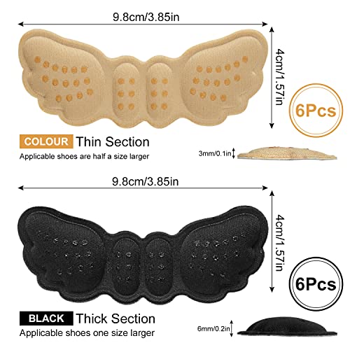 6 Paia Cuscino del Tallone Pad, Dimensioni Spesse e Sottili Adesivi Tacco Cuscinetti Cuscino Scarpa Solette, Autoadesiva Antiscivolo Cuscini per Tallone Heel (3 Paia di Nero + 3 Paia di Beige)