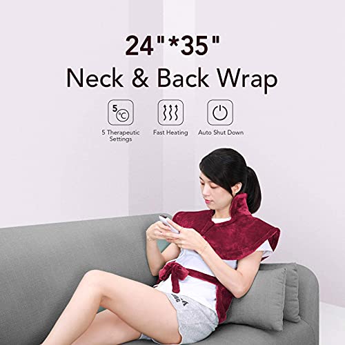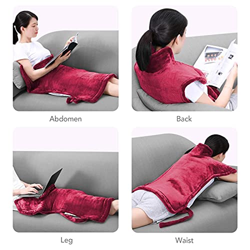 Cuscino Termico Elettrico 60 x 90 cm con Funzione di Autospegnimento, Termoforo per Schiena e Collo Spalle Tecnologia di Riscaldamento Rapido con Temperatura Regolabile Cuscino Termoforo, Rosso scuro