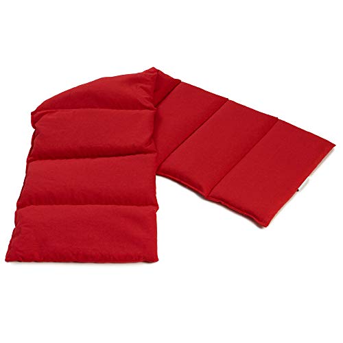 Cuscino termico - Cuscino con semi di ribes 75x20cm per la schiena, il ventre e molto altro. Terapia caldo e freddo (Cotone Bio rosso, diviso en 8 compartimenti)