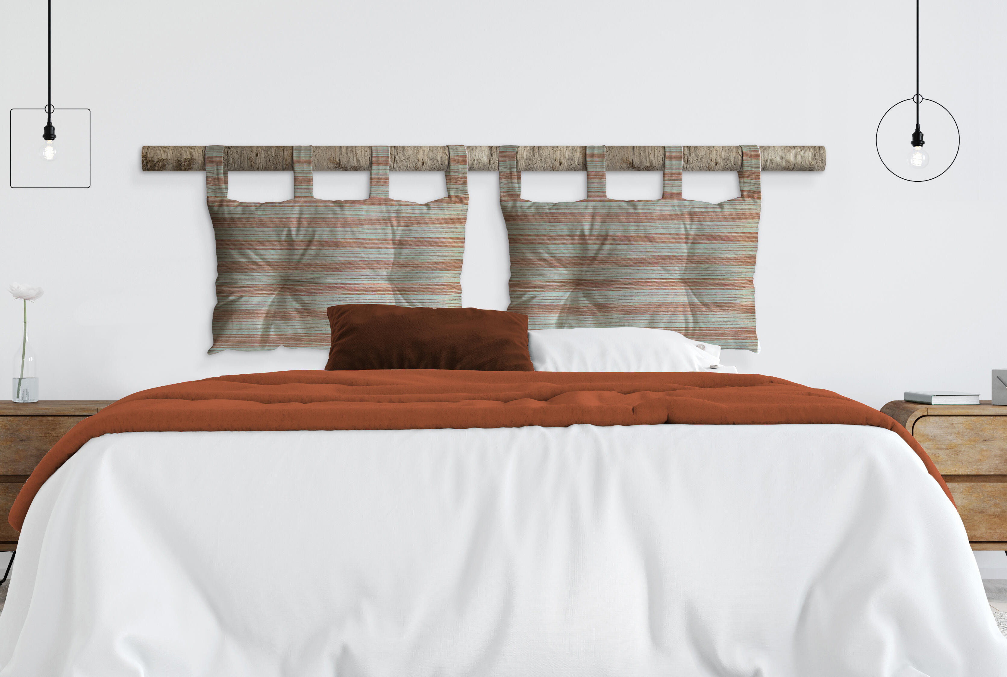 Testata letto riga cm.45x70 mattone. Ideale per creare una testata confortevole per il vostro letto. Il cotone è una fibra naturale morbida, leggera e robusta, facilmente lavabile