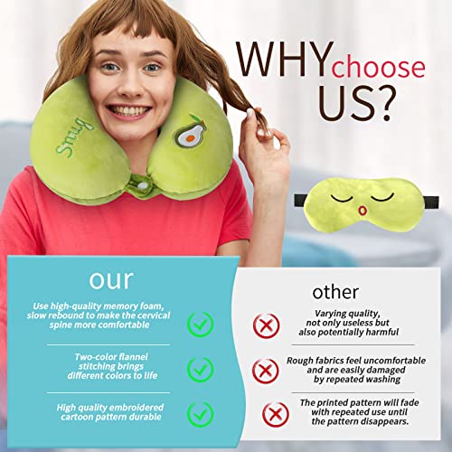 YYDS Cuscino da viaggio, Cuscino per aeroplano con animali carini, Cuscino per supporto per collo portatile, per adulti, casa per bambini, ufficio, campeggio, viaggi, dormire (Green)
