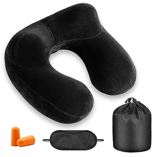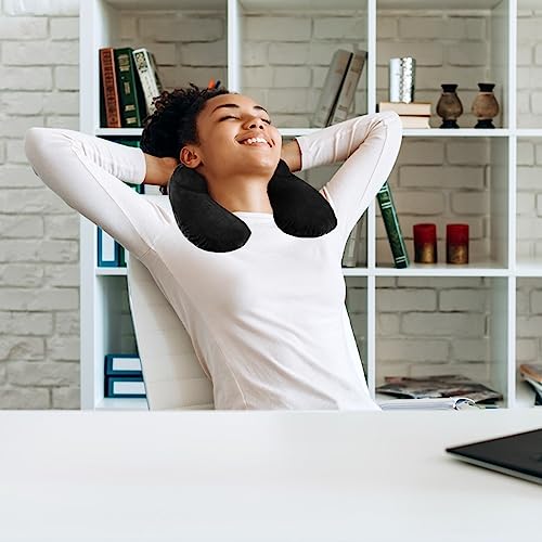 UYDF Cuscino da Viaggio Ggonfiabile,Cuscino Viaggio Collo,Cuscino Aereo Viaggio,Cuscino Collo,Cuscino Cervicale da Viaggio,con Rivestimento Lavabile in Morbido Velluto per Aereo,Treno,Macchina,Nero