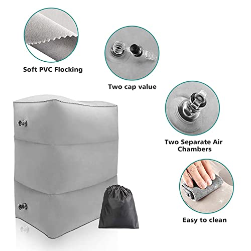 JZK Cuscino da viaggio gonfiabile grigio, cuscino da viaggio a 3 strati con borsa portaoggetti e gonfiatore, cuscino regolabile in altezza per casa, ufficio, autobus e auto