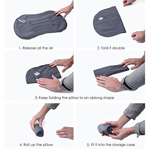 Veloce da gonfiare e sgonfiare:speciale valvola a due strati che consente di gonfiarlo con 3 - 5 soffi.Lo strato superiore della valvola è solo per fare entrare l'aria, che non esce mentre si soffia.Lo strato inferiore della valvola è solo per far uscire l'aria, consentendo di sgonfiare completamente il cuscino in 2 secondi.È possibile regolare la durezza del cuscino regolando il soffio.